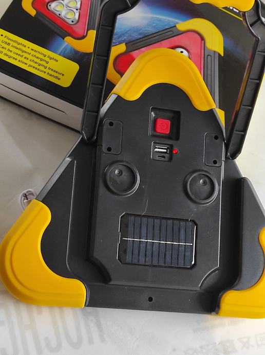 Prodam inovativni solarni svjetleći trokut za signalizaciju i kao oprema u svakom vozilu,ujedno sluzi i kao baterija,ima 3 reflektora u sredini,i vise modova.treptaja i upozorenja crveno reflektirajuće oko.Ugrađene su trajne baterije ,puni se solarno ili uz priloženi USB kabel na mobitel pznjač.Služi i kao poverbank.za punjenje mobitela smartfona i dr.Prodam za 348 kn.,Moguća dostava postom.