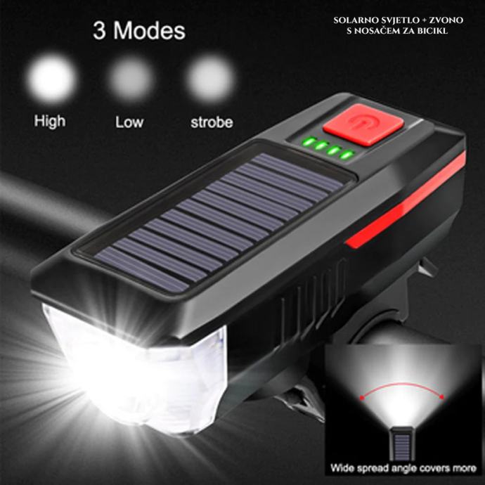 Prednje svjetlo za bicikl na solarni pogon sa zvonom
