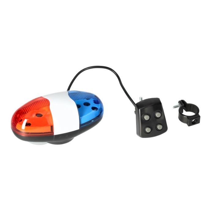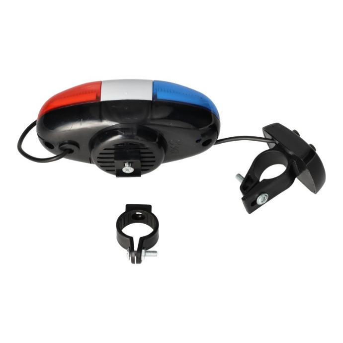 Policijsko svjetlo za bicikl sa zvukovima iz XL-TOOLS savršen je dodatak za male bicikliste koji se žele osjećati kao pravi policajci. Zahvaljujući spektakularnim policijskim svjetlima i glasnoj sireni, vožnja biciklom postaje ne samo sigurnija, već i uzbudljivija. Proizvod je opremljen LED diodama koje naizmjenično treperi plavom i crvenom bojom, a nudi i četiri načina glasne sirene. Svjetlo se lako pričvršćuje na vaš bicikl i radi na dvije AA baterije (prodaju se zasebno).