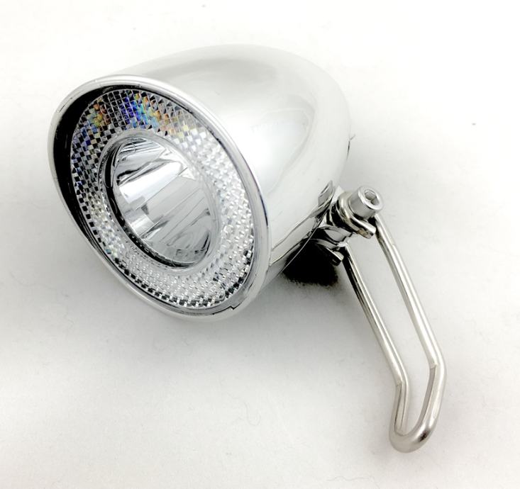 Kvalitetno prednje svjetlo s halogenim žaruljama, na dinamo, ima prekidač. Retro izgled.