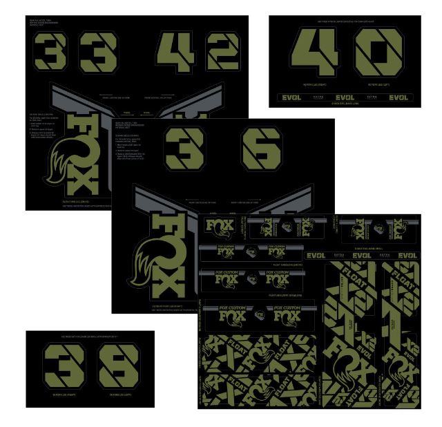 FOX 803-01-741 FOX DECAL 2021 AM CUSTOM FORK AND SHOCK KIT OLIVE DRAB