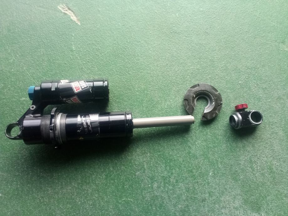 Rebound cijev je izletjela i ostala negdje u šumi... ostali djelovi amortizera u super stanju. Vizualno 9-10