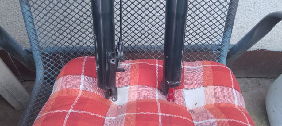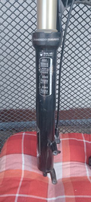 Rockshox Reba 100mm zracna vilica 26", tapered stirer 225mm, jako lagana i atraktivna vilica, ponesto klasicnih ogrebotina od koristenja - bez ikakvih ostecenja, dual air, rebound, ima remote lock koji radi - ponekad se sajla ne vrati pa je treba rucno vratit, pozeljno promijenit sajlu ili maknut remote, ali sami lock uredno radi, samo da se znaju detalji, cijena je max spustena 200E te je fixna i zadnja