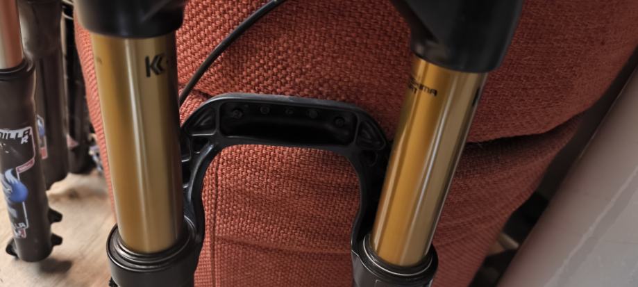 Prodajem rabljenu FOX Kashima CTD vilicu za 29 cola. Vilica je u dobrom stanju s prepoznatljivom zlatnim Kashima premazom i plavim CTD podešavanjem.