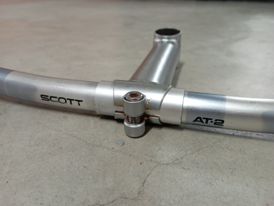 Prodajem retro volan iz 90tih Scott AT-2 250 grama zajedno sa lulom volana. Jako lagano. Volan ima integrirane rogove tzv bullhorn. Duljina lulice cca 13 cm , širina volana 55cm.