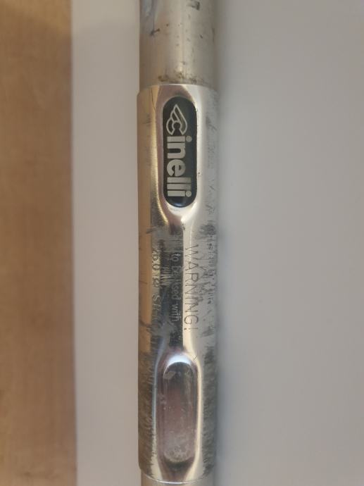 Prodaje vintage Cinelli Touch aluminijski aero volan za prihvat volana 26 mm. Sirina volana centar - centar je 41 cm. Reach je 70 mm. Volan ima tragove koristenja i nedostaje jedna Cinelli oznaka na volanu.