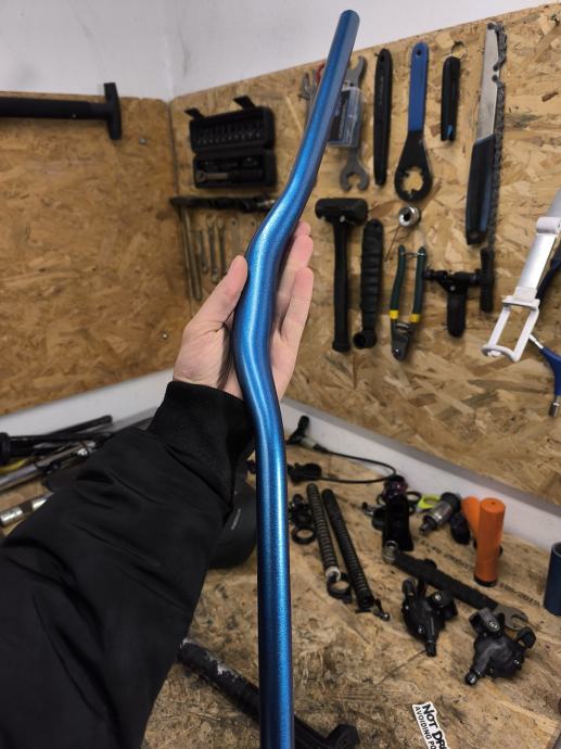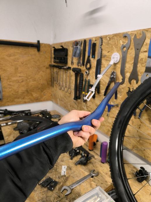 Na prodaju aluminijski 700mm volan skinut sa novog bajka i friško sredjen u Pearl plavoj boji, prihvat lule je 31.8mm.