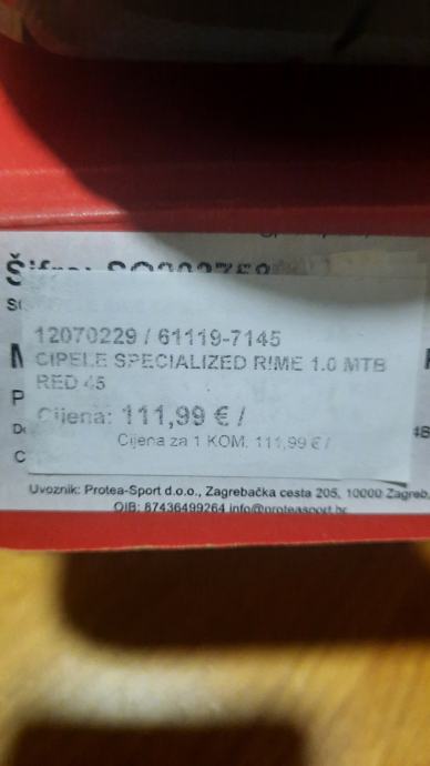 Prodajem Specialized MTB cipele, model Rime 1.0, veličina 45 / 29 cm. Cipele su nove i nenošene! Kupljene prevelike i samo stoje doma.