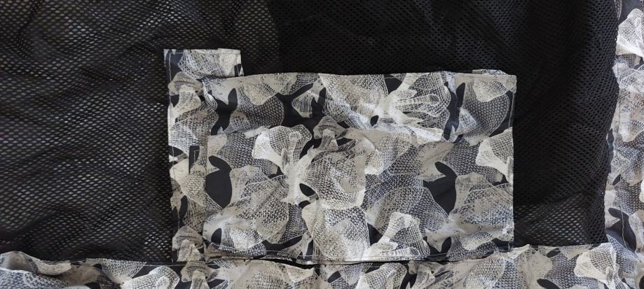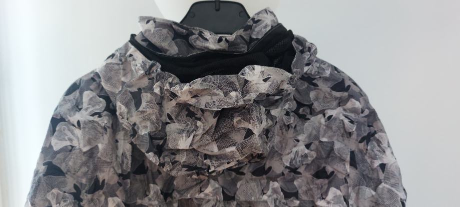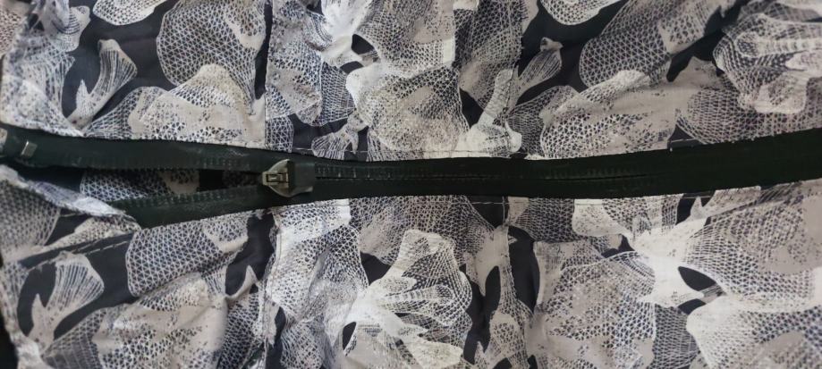 Patentni zatvarač je vodootporan. Jedna vezica za zatezanje na donjem šavu jakne (uglavnom nikom nešto funkcionalna) je puknuta.