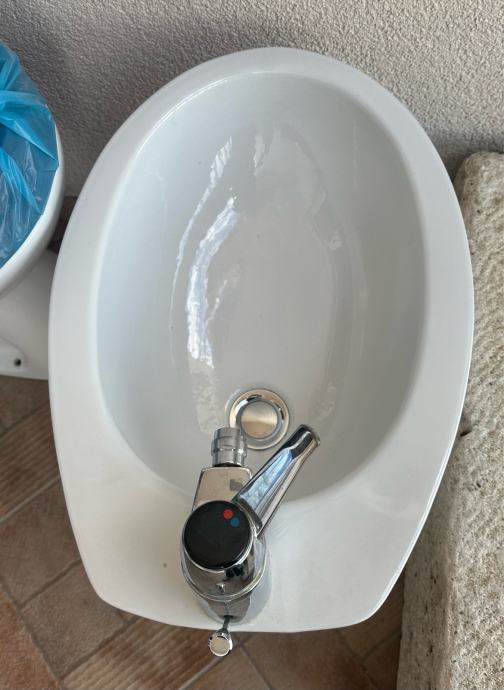 Prodajem bide u bijeloj boji s kromiranom jednoručnom slavinom. Bide je ovalne forme, standardnih dimenzija, pogodan za svaku kupaonicu. Slavina je kvalitetna, s mehanizmom za podešavanje temperature i jačine vode. Sve je funkcionalno i spremno za ugradnju.