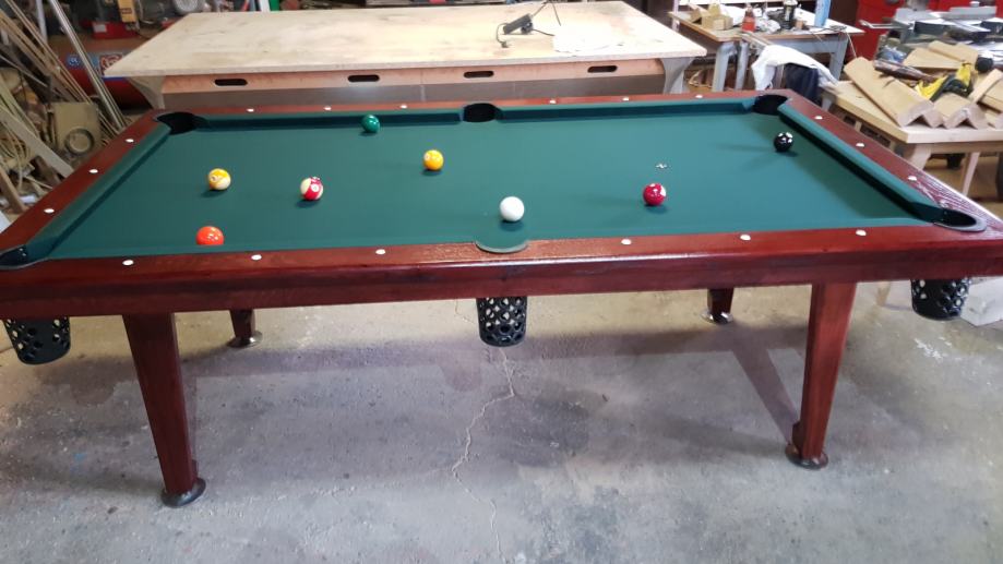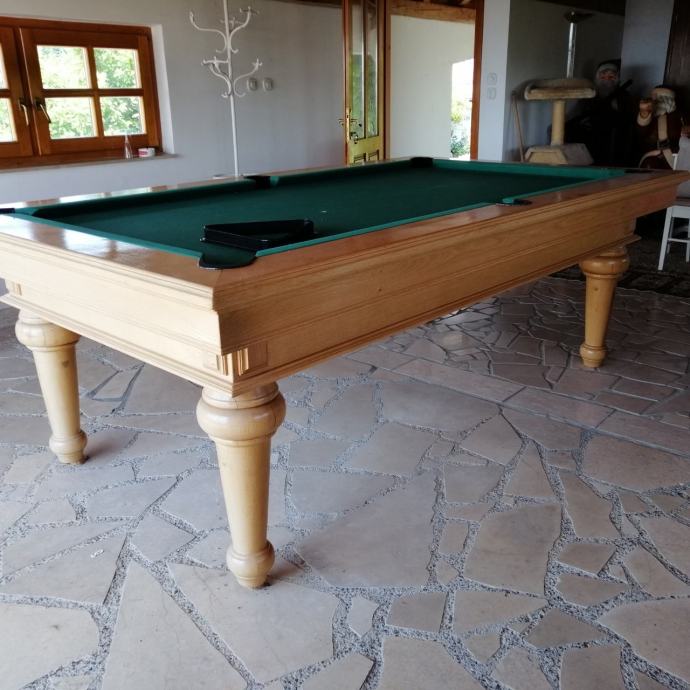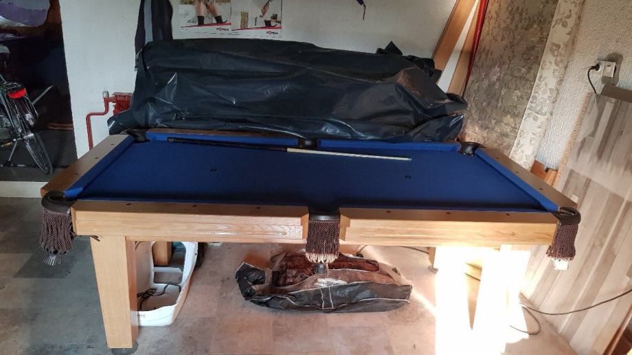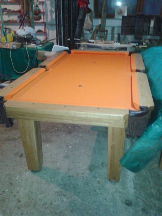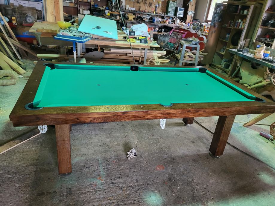 Biljar veličine 7 vanjske mjere 232 x132 hrast masiv biljar je nov može služiti i kao blagovaonski stol igrača ploča je mramorna za vrhunski užitak u igri cijena 10000 kn uz stol ide komplet oprema za igru.dva štapa kugle trokut i kutija krede. Mob: 098 565 480
