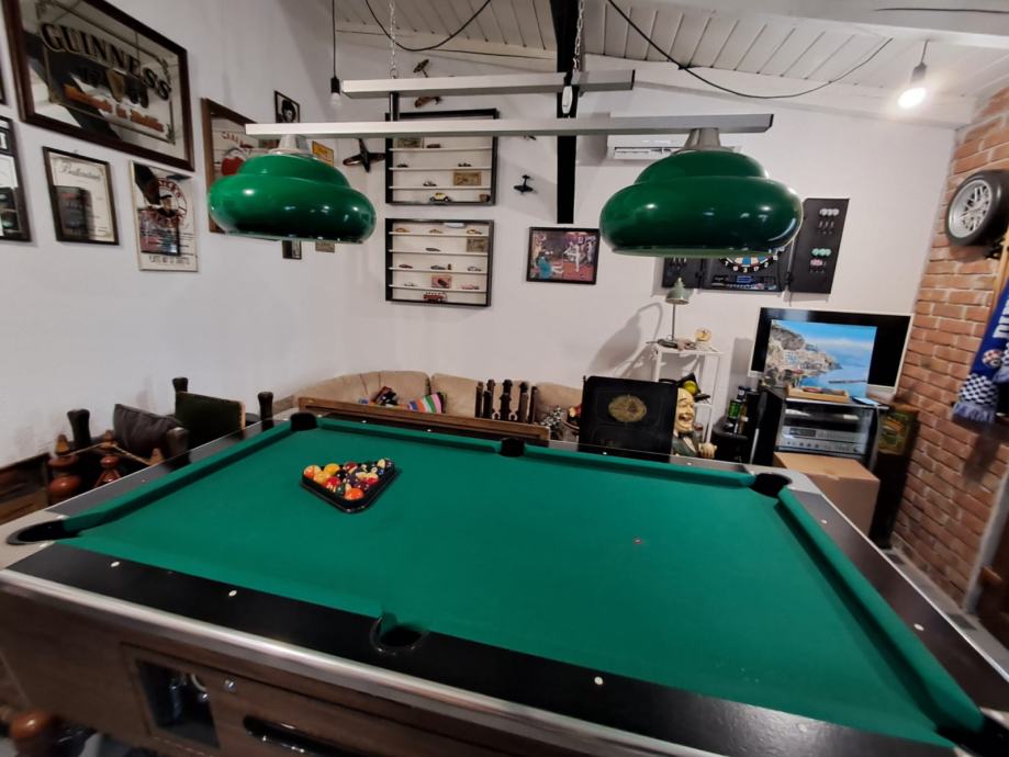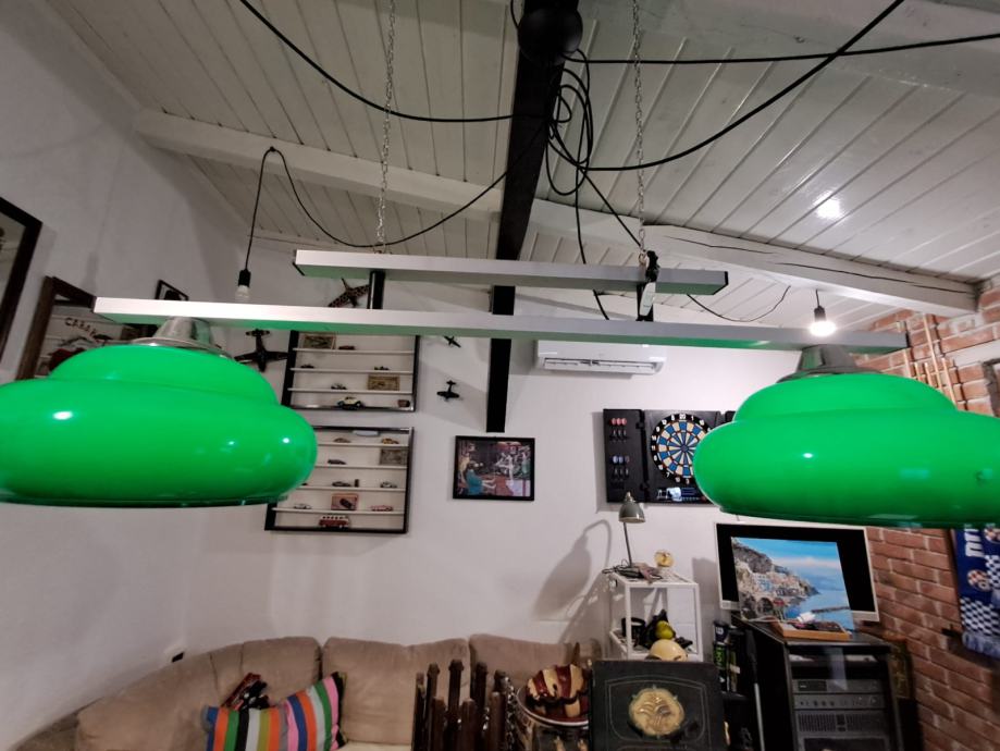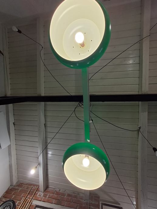 Biljarska lampa aluminij sa plastičnim sjenilima,Italija.Dužina 147 cm.U odličnom stanju.