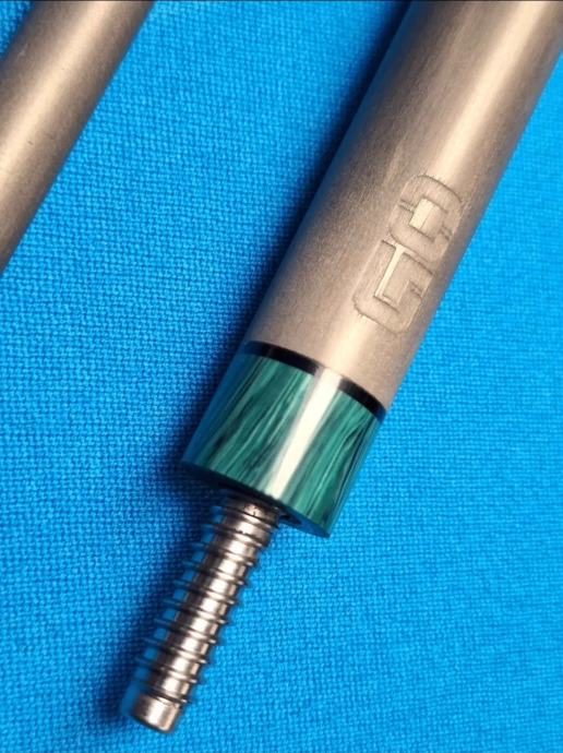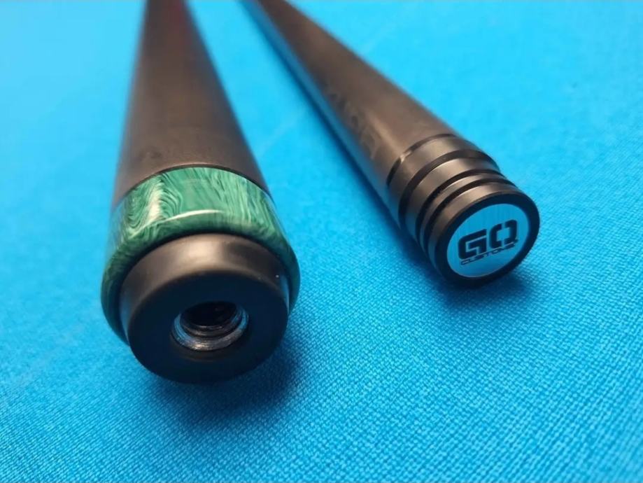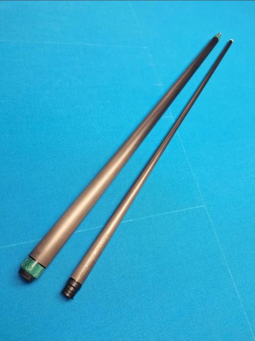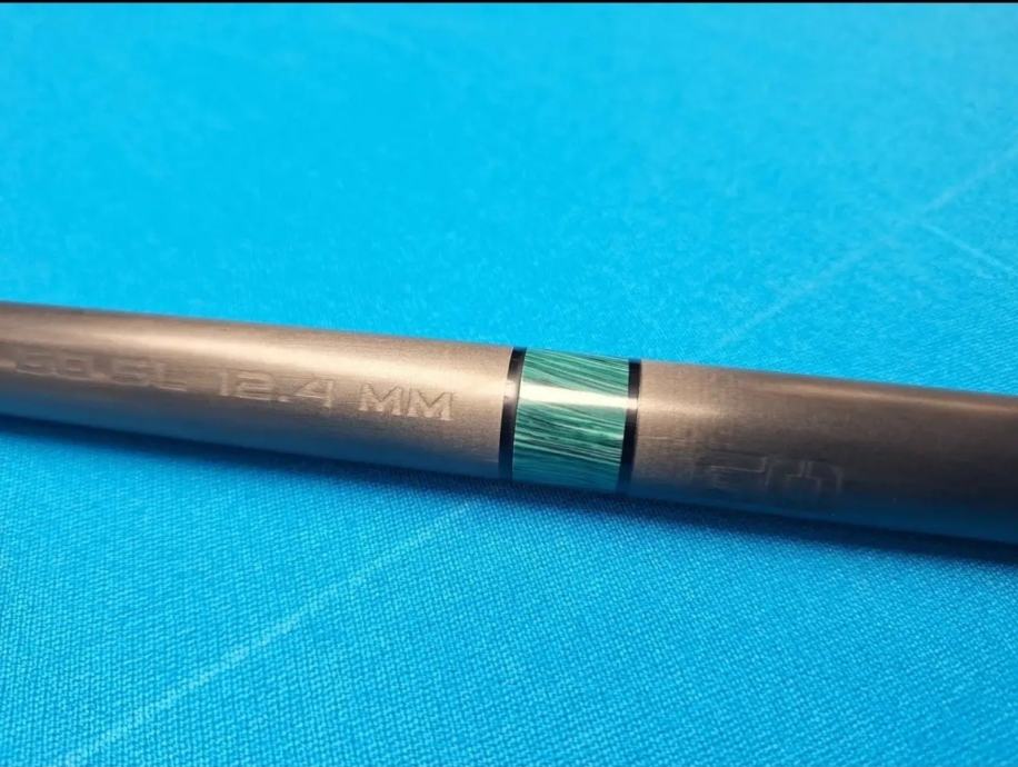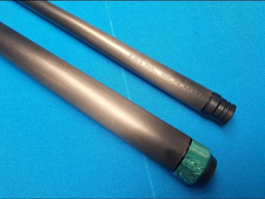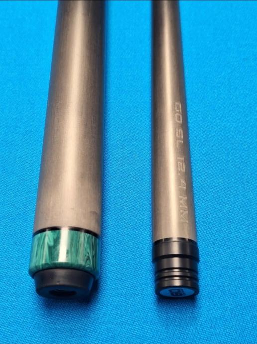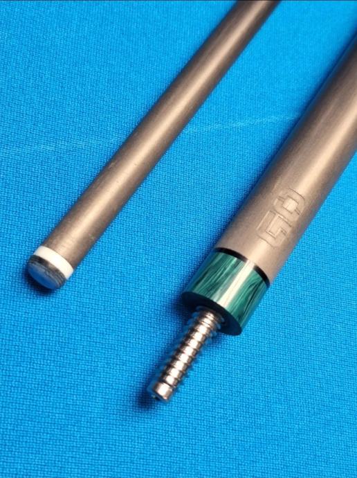 GO Customs čistokrvni karbonski biljar štap s Green GEM prstenovima, 3/8×10 jointom i 12,4 mm tipom – vrhunska preciznost, balans i kontrola bez kompromisa, uz gratis 6” ekstenziju. Stanje 10/10