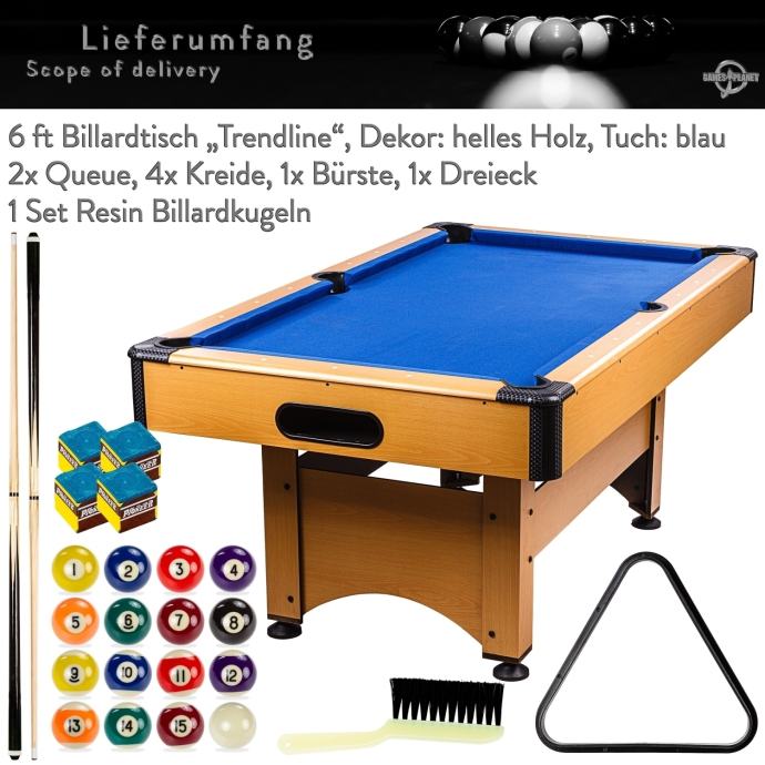 Zahvaljujući nogama podesivim po visini, stol se može idealno uravnotežiti i izravnati. Osim zaštitne funkcije za kutove, rubna zaštita također smanjuje rizik od ozljeda. Tijelo je potpuno unaprijed sastavljeno, preostaje samo pričvrstiti noge. Zahvaljujući dodacima koji su uključeni u isporuku (2x štap, 2x kreda, 1x kist, 1x set biljard kugli od smole od 44,5 mm, 1x trokut), sve je uključeno da odmah počnete igrati!