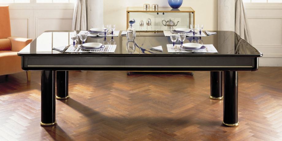 Elegantan stol, lakiran u crnu boju. Blagavaonska ploča izradena je iz dva dijela. Noge su metalne.