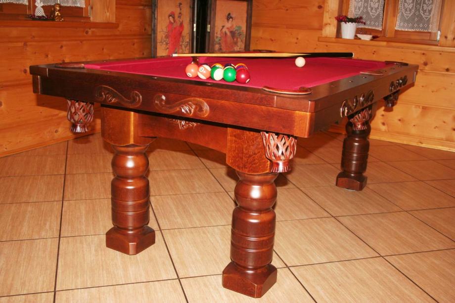Biljarski stol Dex izrađen je od prirodnog masivnog drva. Mogućnost narudžbe i blagavaonske ploče, koja ovaj stol pretvara u multifunkcionalni biljarsko-blagavaonski stol.