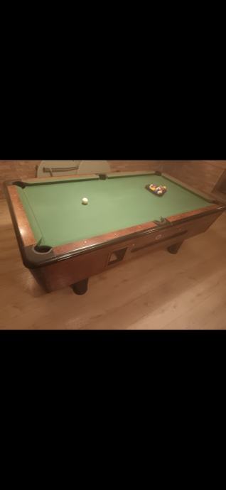 naslovljeni biljarski stol u izvrsnom stanju (kao nov). Cijena 1000 e, za ozbiljnog kupca moguć dogovor oko cijene. Mehanizam za ispuštanje kugli radi na kovanice. Molim zvati na broj 091/2087-630.