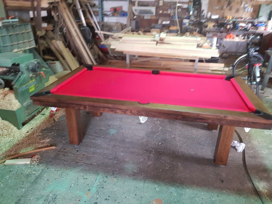 Biljarski stol veličina7 sa pokrovnom pločom ujedno je i blagovaonski novi sa komplet opremom kugle, stapovi ,kreda,trokut.