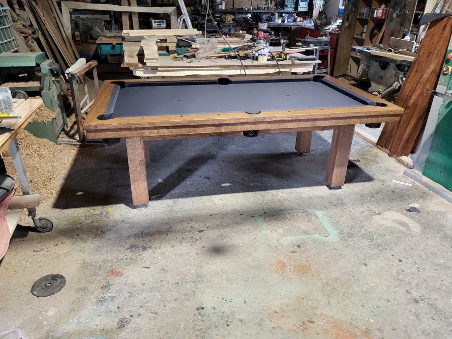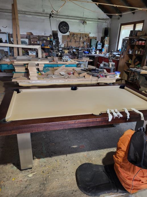 Biljarski stol hrast masiv sa nogama od inoxa i mramornom pločom