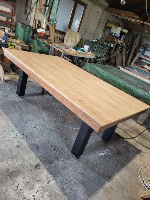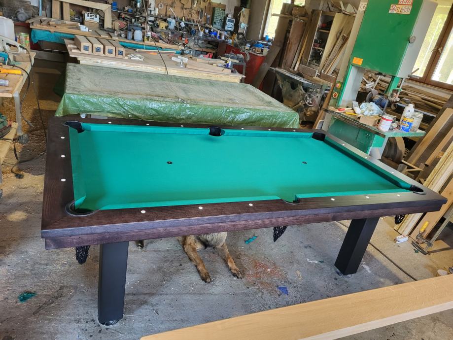 Biljarski stol sa mramornom igračom pločom hrast masiv .sluzi i kao blagovaonski stol sa komplrtnom opremom boje po izboru kupca.