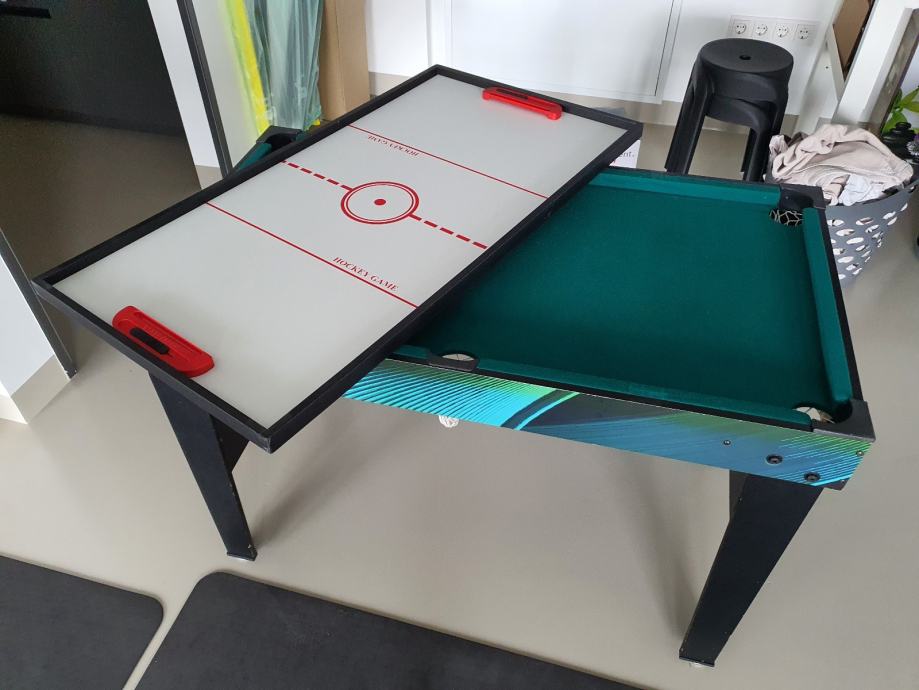 Prodajem dječji stol za igru 4 u 1. Radi se o višenamjenskom stolu koji u jednom komadu objedinjuje četiri različite igre, a može se koristiti kao stol za stolni nogomet, stolni tenis, bilijar i hokej.