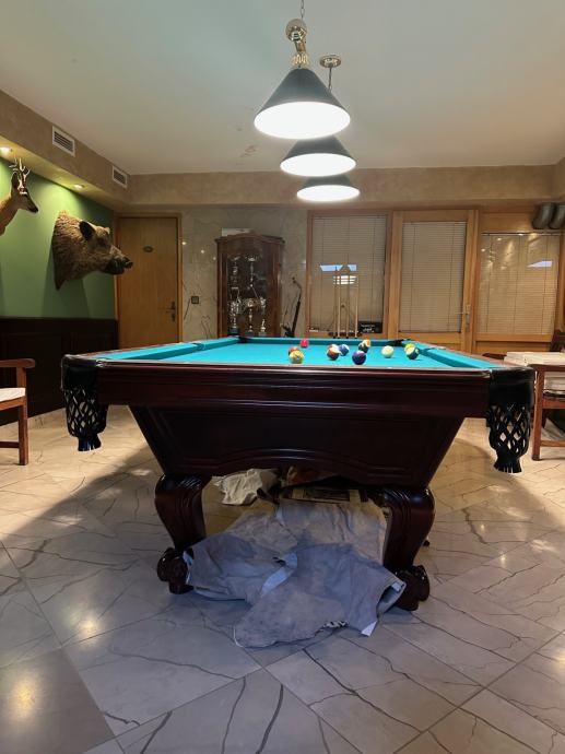 Ručno rađeni biljarski stol od punog egzotičnog drva.