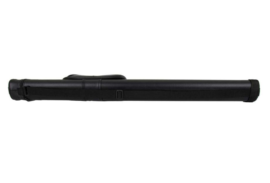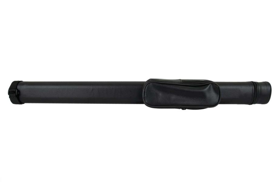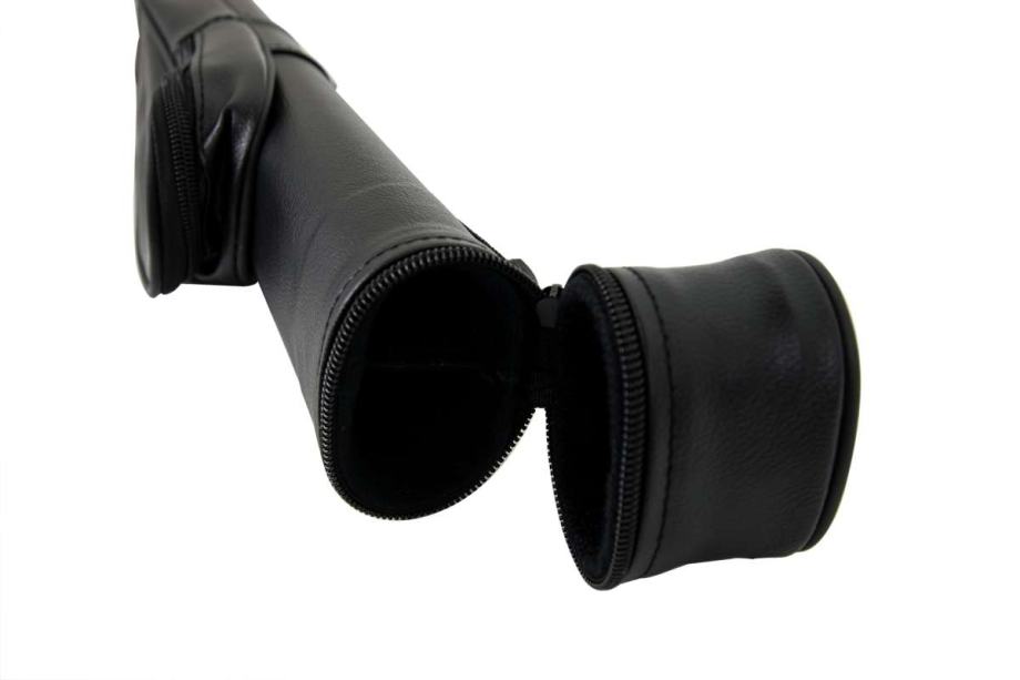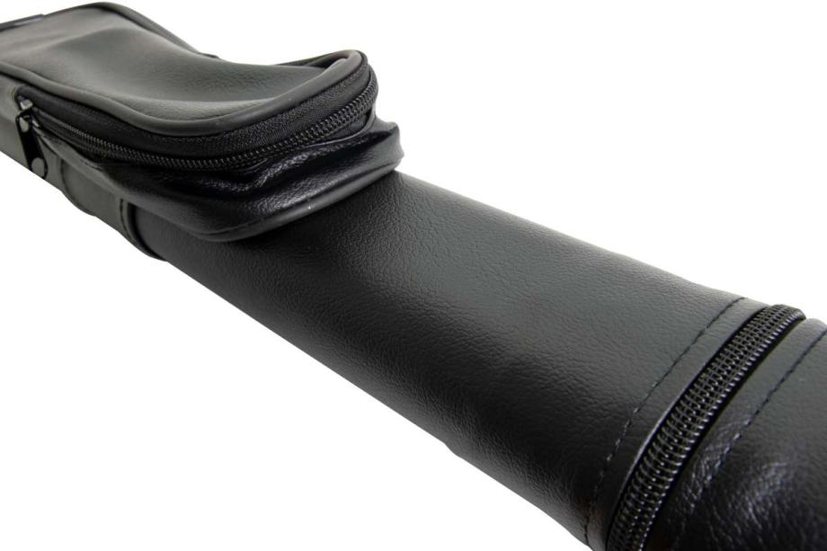 Čvrsta, crna, eko kožna tapacirana futrola za biljarski štap iz dva dijela i velikim džepom za opremu ( kiks, rukavica, ručnik, sitni alat... )