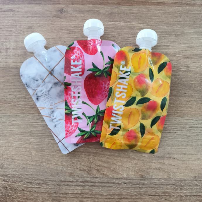Uz mikser dolazi špatula i poklanjam 3 Twistshake vrećice za kašice (pogodne za zamrzavanje i pranje u perilici) te knjižicu s receptima.