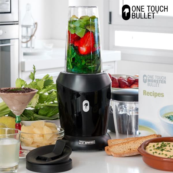 Ako kod kuće želite imati posljednji krik među blenderima, nemojte propustiti moćni Blender One Touch Monster Bullet. Njegovo jednostavno djelovanje čini Monster ekskluzivnim blenderom na tržištu, s obzirom na to da je dovoljan pritisak prsta na čašu kako bi dobili ukusne sokove, umake, smoothie, itd., koji su puni vitamina. U podnožju ima zaštitu od klizanja za veću stabilnost i bolji prijem. Značajke:Snaga: 100-1200 WFrekvencija: 50-60 HzNapon: 220-240 VSadrži:1 hermetički pokrov za nošenje i pijenje1 hermetički pokrov za zatvaranje1 pokrov sa 6 oštrica od čelika1 posuda približne dimenzije 500 ml1 posuda približne dimenzije 800 mlPribližne dimenzije: 15,5 x 38,5 x 15,5 cmPribližne dimenzije bez čaše: 15,5 x 20,5 x 15,5 cmKnjiga recepata