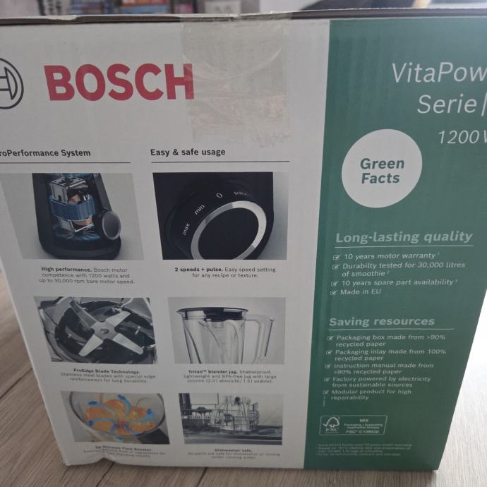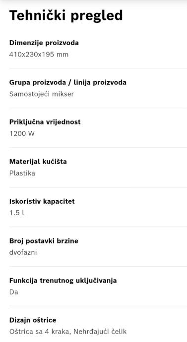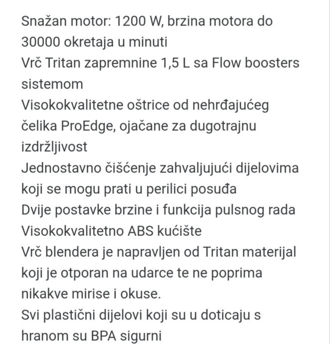 ▪︎Snažan motor: 1200 W., brzina motora do 30000 okretaja u minuti ▪︎Vrč Tritan zapremnine 1,5 L sa Flow boosters sistemom