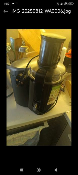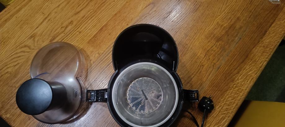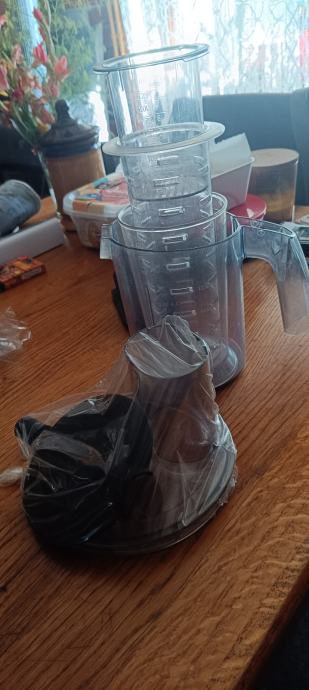 Korišten neko kratko vrijeme .Voće smo iskoristili na uređaju maximalno,cijele kruske,jabuke,naranče,ananas,i sl.Stavite cijelu jabuku npr.posebno odvaja koru,ostatke dok na dr.str.izlazi sok od jabuke ...