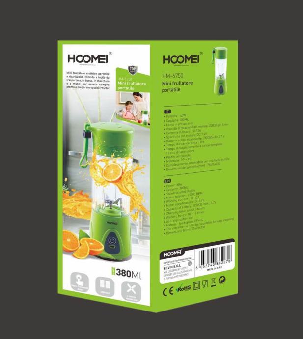 Prijenosni blender Hoomei izuzetne kvalitete,doslovno u 3 okretaja napravi ukusan smoothie.Usporedivano sa Bosch blenderom kojem treba 3 puta vise vremena da napravi ovo sto ovo malo cudo napravi u 3 okretaja.Jake ostrice od nehrdajuceg celika