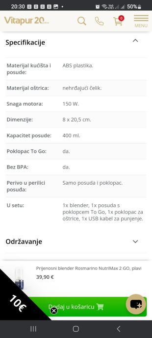 Prijenosni blender Rosmarino NutriMax 2 GO