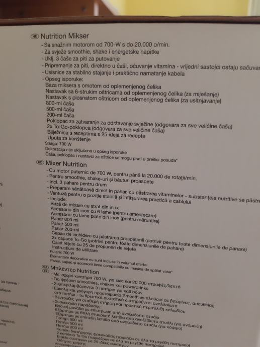 Blender tipa "nutribullet", kupljen u Lidlu, korišten par puta. Sve funkcionira, ima dosta opreme i rezervnih čaša i poklopaca
