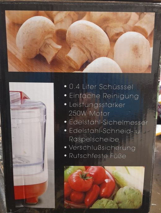 Elektricna sjeckalica i ribež 250wati.Velika pomoc u kuhinji.Novo.Ne saljem.U orig. Kutiji.