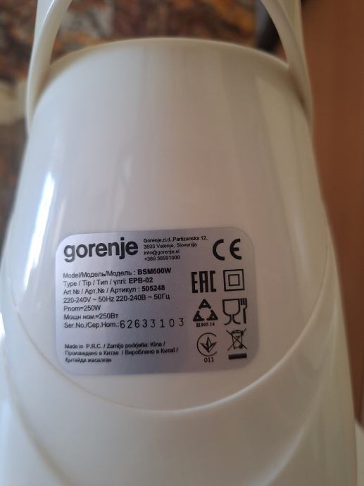 Gorenje BSM600W je praktični mali blender s ugrađenim AC motorom snage 250 W. Opremljen je plastičnom posudom za miješanje s XXL otvorom koji omogućuje jednostavno dodavanje sastojaka.