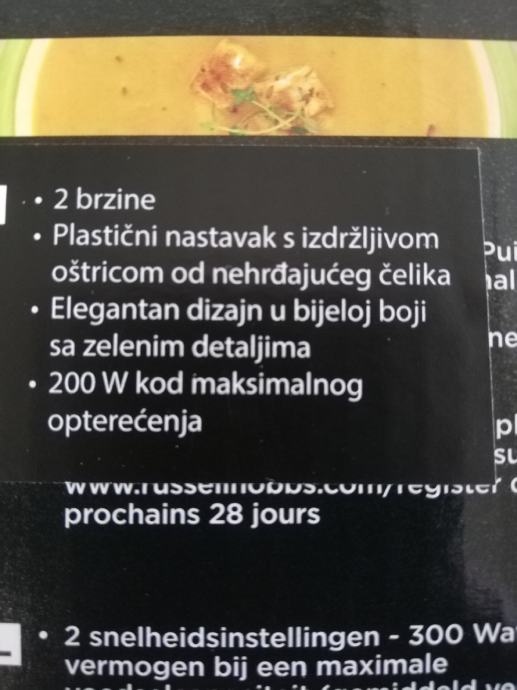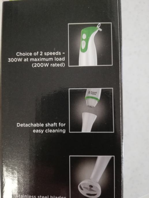 Prodajem novi zapakirani štapni mikser marke "Russell Hobbs" snage 300 W s dvije brzine i dva dijela.