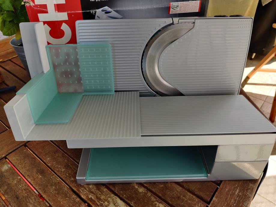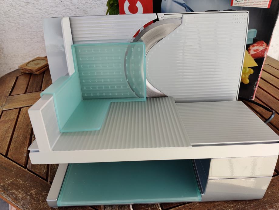 • Tihi pogon i velika metalna zaštita za palac za jednostavno rezanje, čak i za rezanje većih namirnica.
