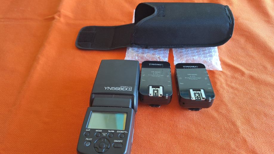 Prodajem u kompletu sve sa fotografija bljeskalica flash za Canon Yongnuo 568EXII sa dva triggera transceiver YN 622C u ispravnom stanju. Cijena je za cijeli komplet.