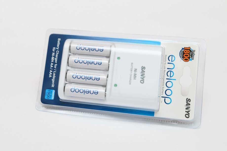 U kompletu potpuno novi punjač i 4 AA punjive baterije Eneloop.