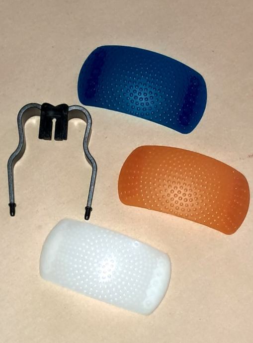 Prodajem difuzore iz naslova u dvije boje i bijeli s nosačem koji se učvrsti na nosač bljeskalice na aparatu.