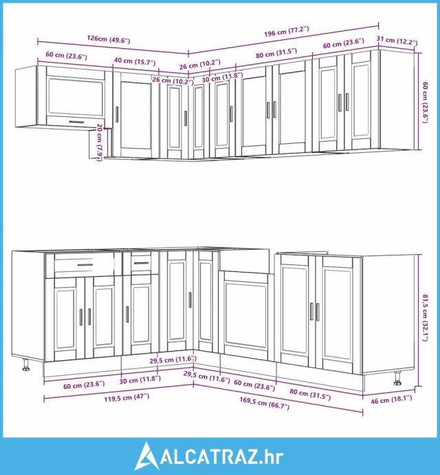 Ovaj 11-dijelni set kuhinjskih ormarića svojim elegantnim dizajnom optimizira vaš kuhinjski prostor i pruža dovoljno prostora za spremanje vaših osobnih stvari!