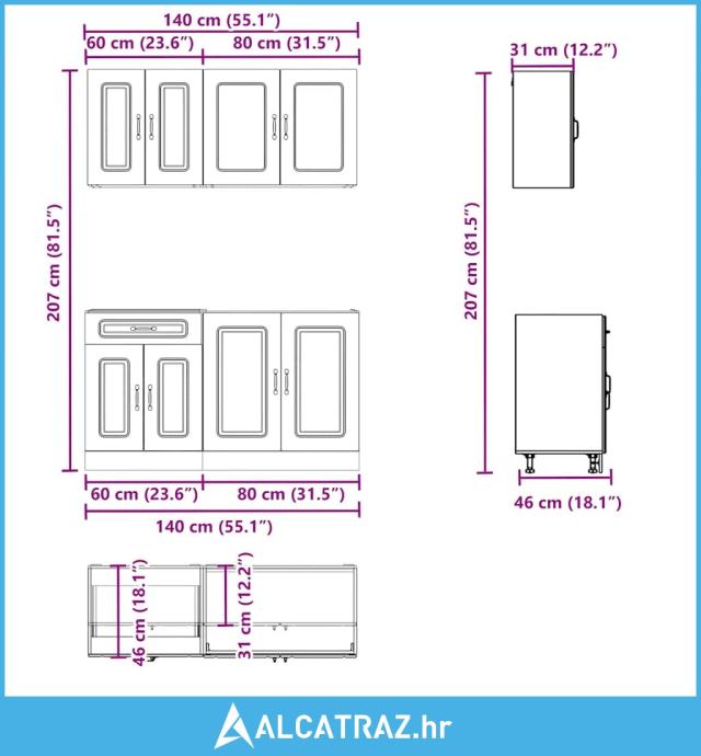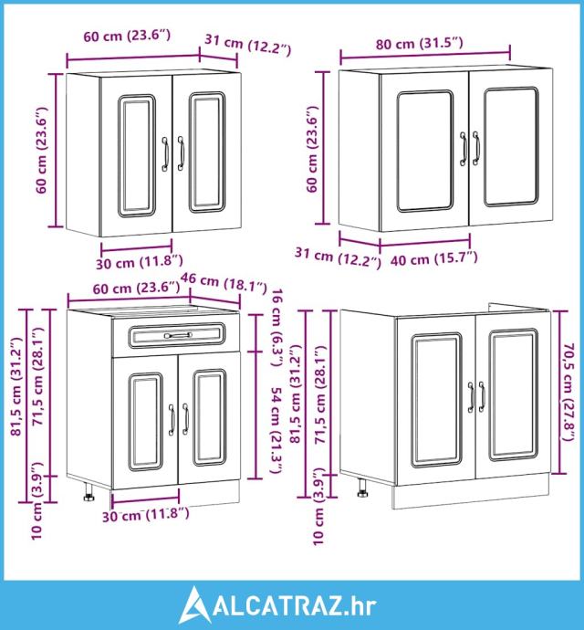 - 1 x donji ormarić za sudoper: 80 x 46 x 81,5 cm (Š x D x V)
