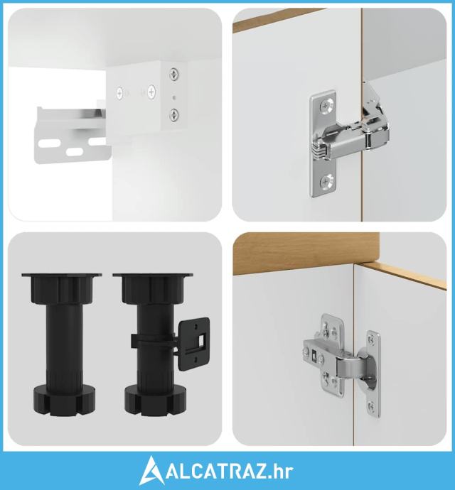 - Podesive noge: Donji ormarići imaju podesive noge koje se mogu podesiti po visini kako bi odgovarale rasporedu vaše kuhinje.