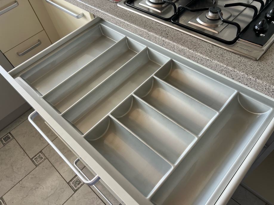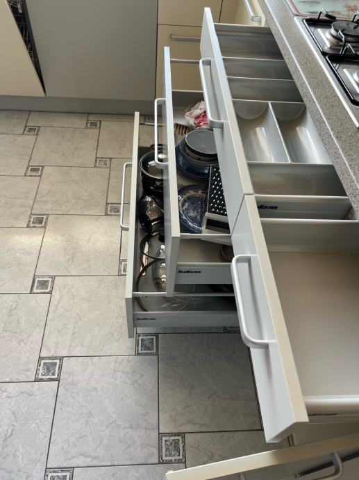 Kuhinja je održavana i u odličnom stanju. U svim ladicama su od početka zaštitne gumene folije protiv oštećenja.