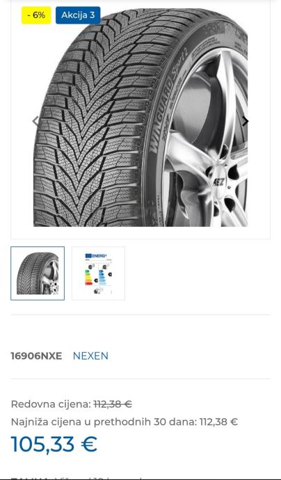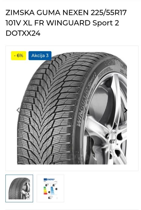 Razina buke gume je 72 dB, a ocjena učinkovitosti goriva je C.