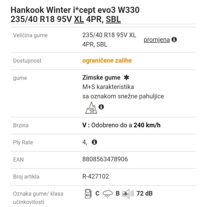 *NOVO*Hankook Winter i*cept evo3 W330 235/to40 R18 95V XL