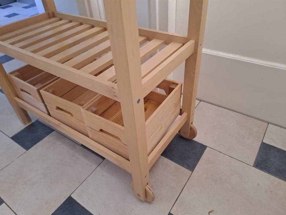 A wooden kitchen trolly in excellent condition. Comes with 3 wooden boxes.