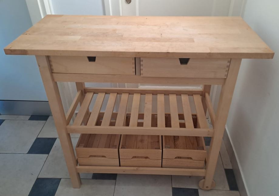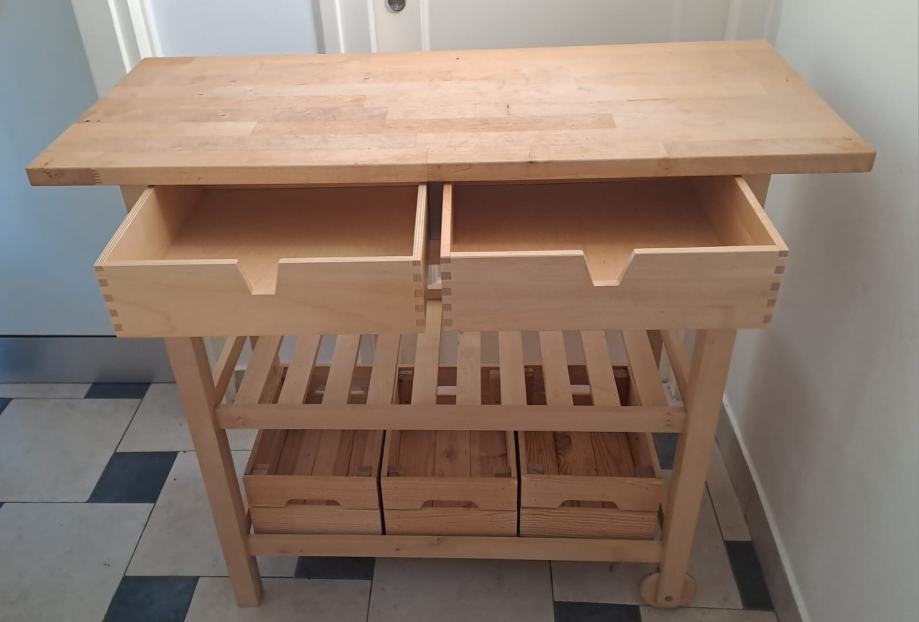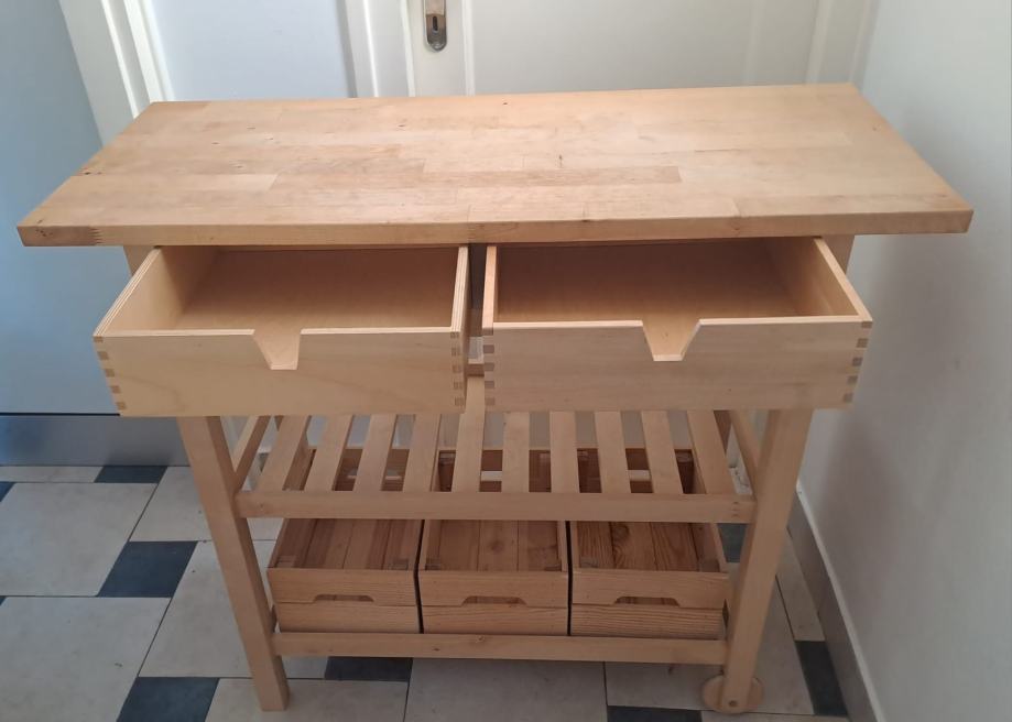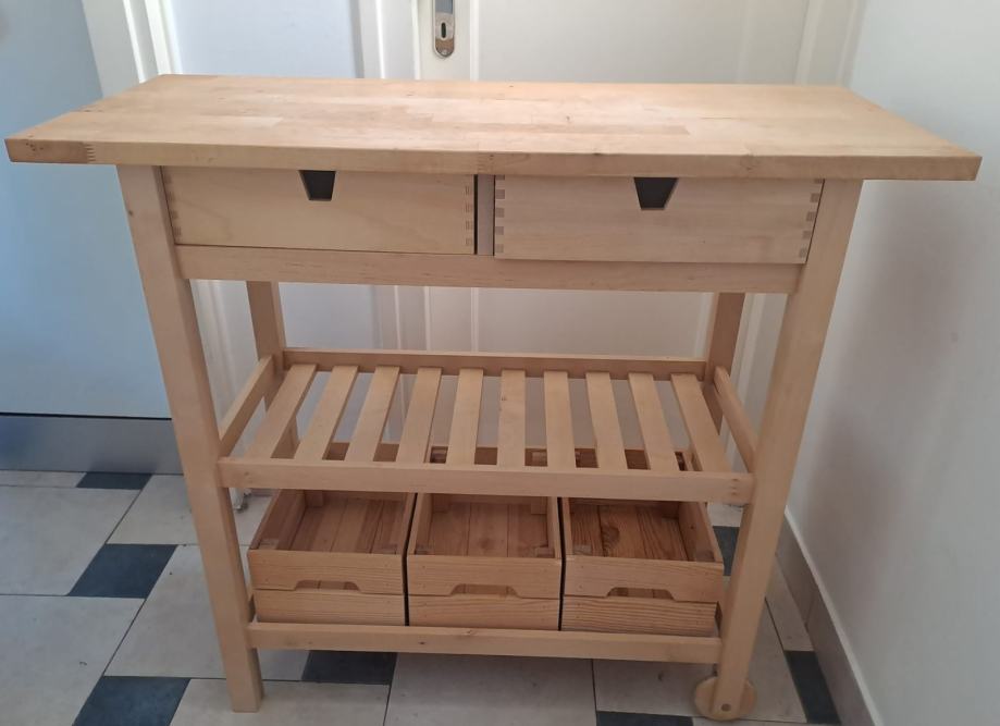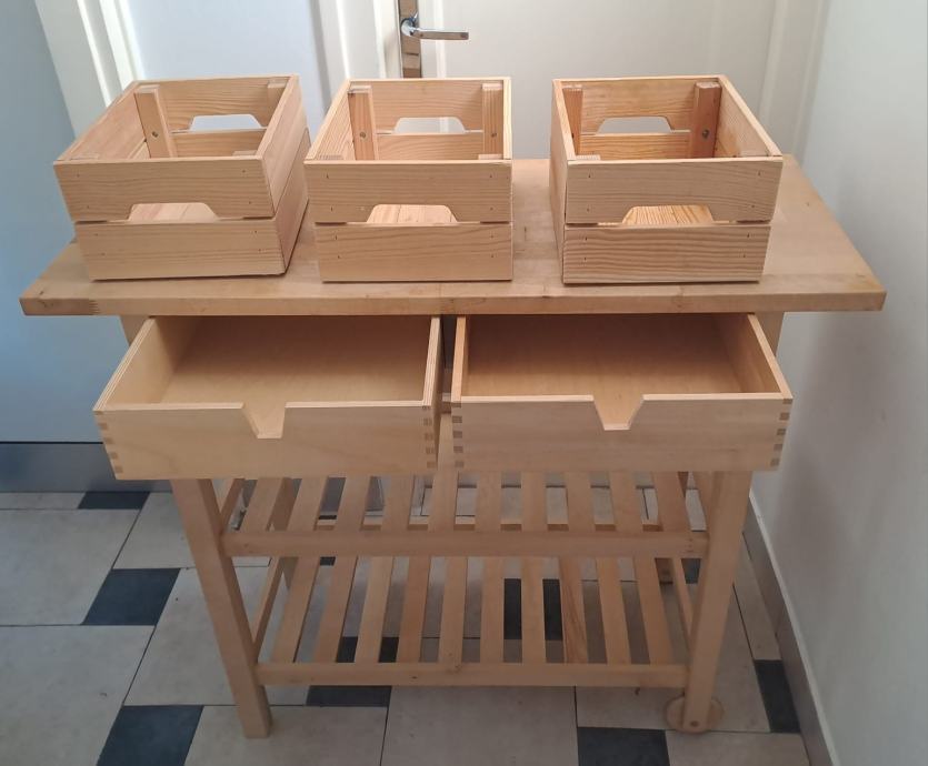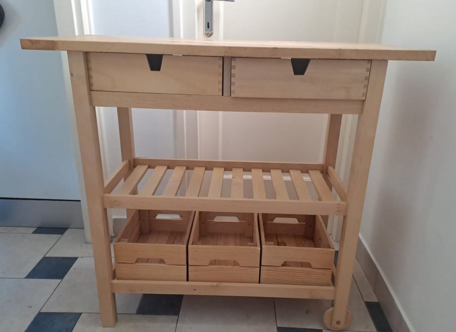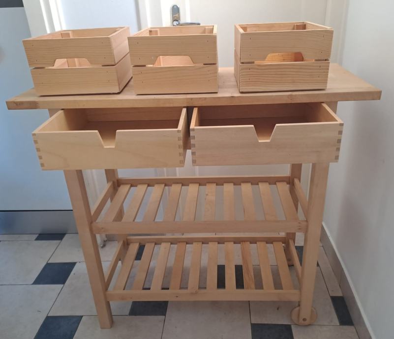 Drvena kuhinjska kolica u izvrsnom stanju. Dolazi s 3 drvene kutije.
