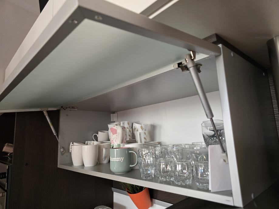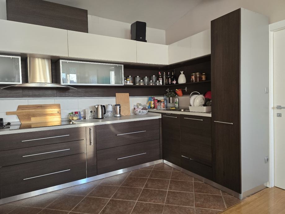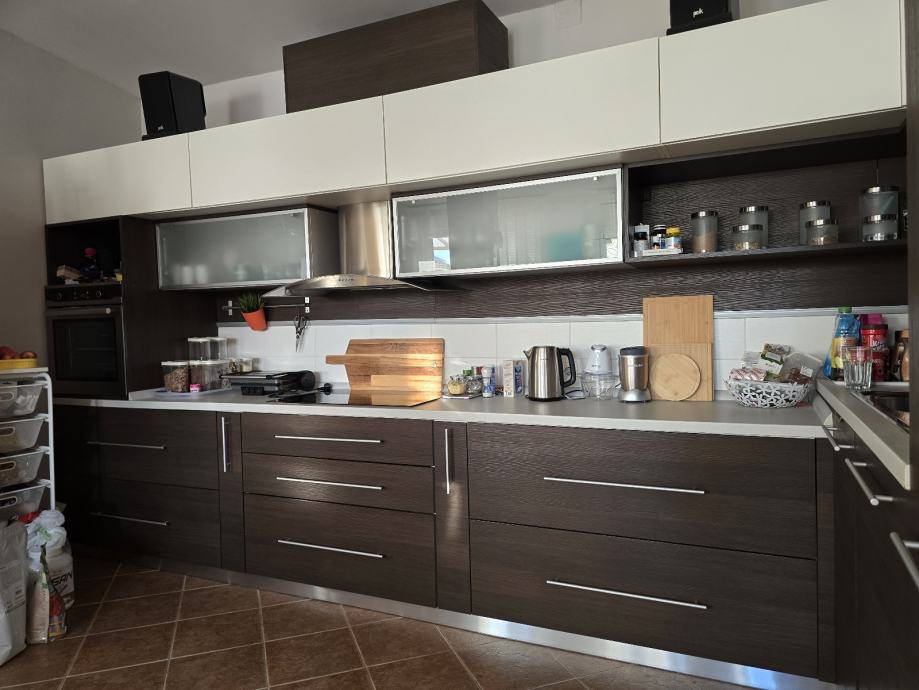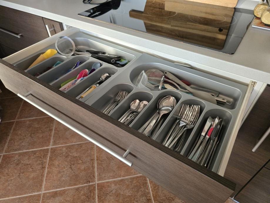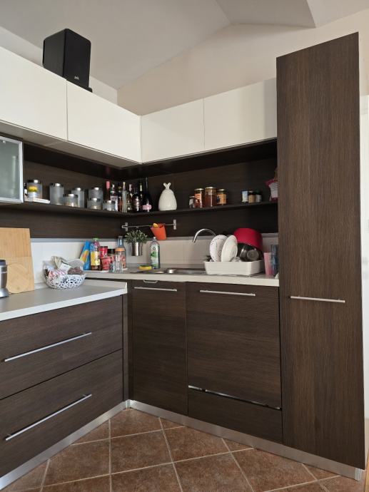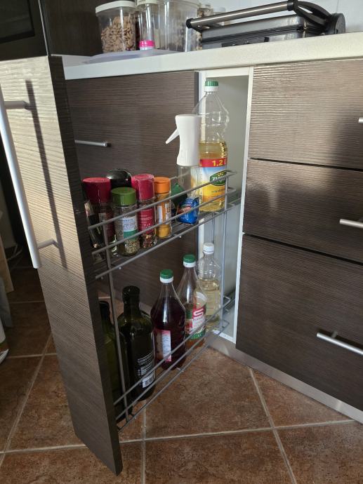 Kuhinja ima soft close ladice, organizatore, drveni dio nema oštećenja.